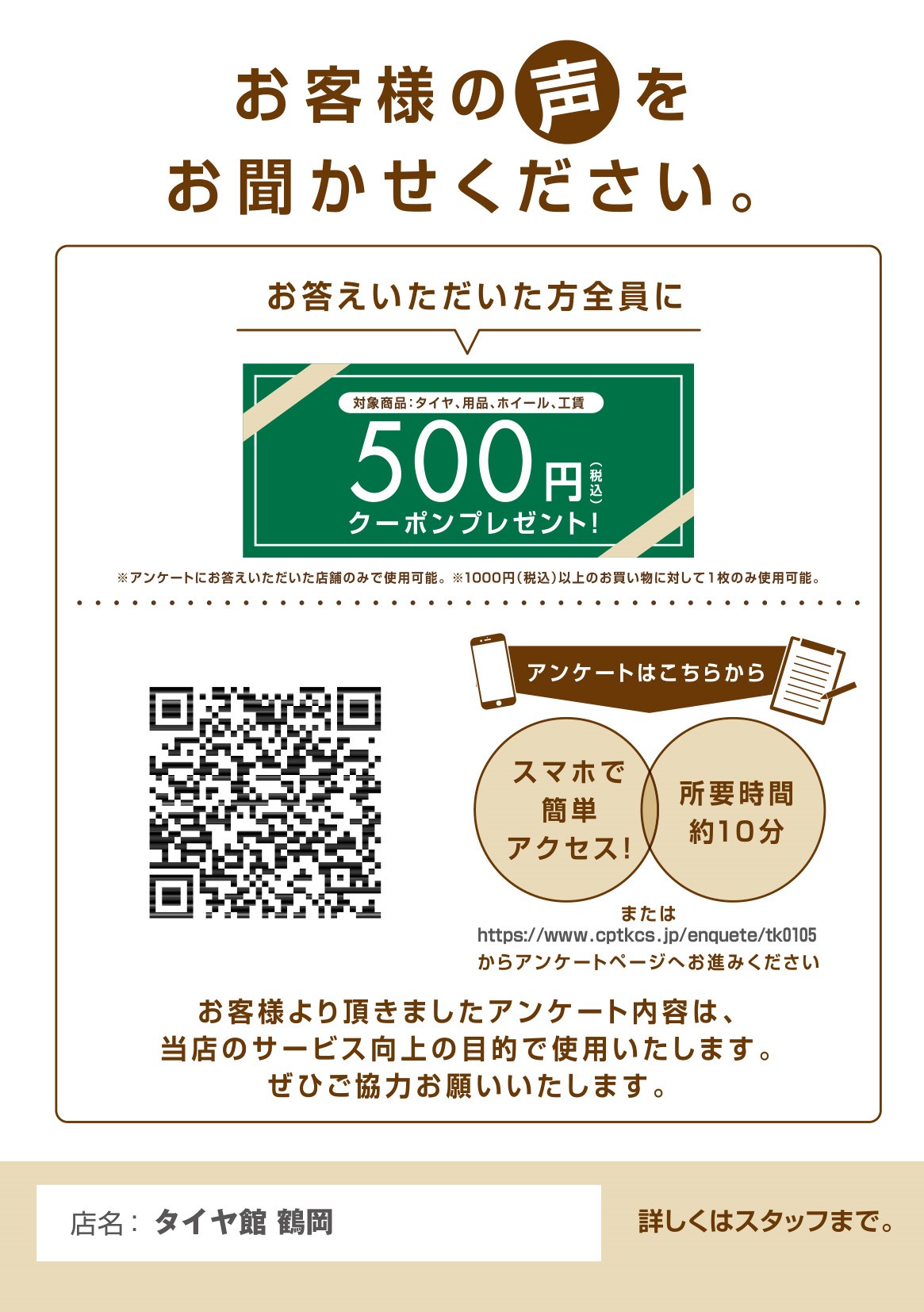 アンケートに答えて500円クーポンGET!! ポスト 2019年6月27日 WEBからお店のアンケートをお願いしています☆彡 アンケートにお答えいただいた方全員に、500円クーポンが携帯画面に表示されます!! ぜひ、お客様の声をお聞かせください!! ご要望など、ドシドシお待ちしております(*^-^*) ウエイティングコーナーにQRコードがありますので、待ち時間などにアクセスしてみて下さい!! 担当:菅原
