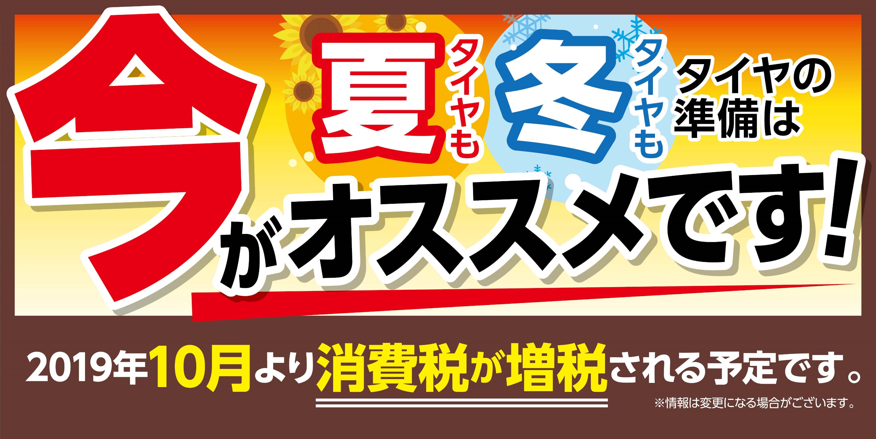 夏タイヤも・冬タイヤも準備するなら増税前の今がオススメです(*´▽`*)