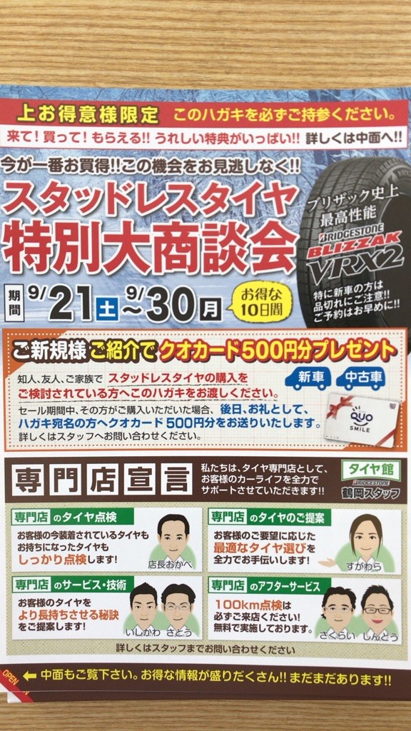 また、10/31(木)までタイヤお持ち帰り、またはお取り付け出来る方!