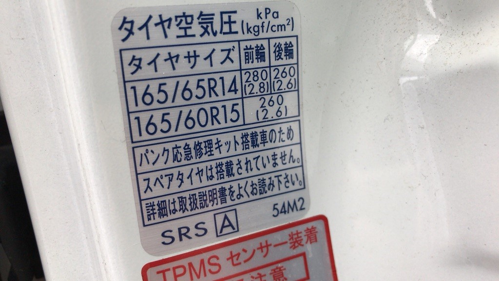 または、お車のドアをあけた所に空気圧シールが貼られていると思います。