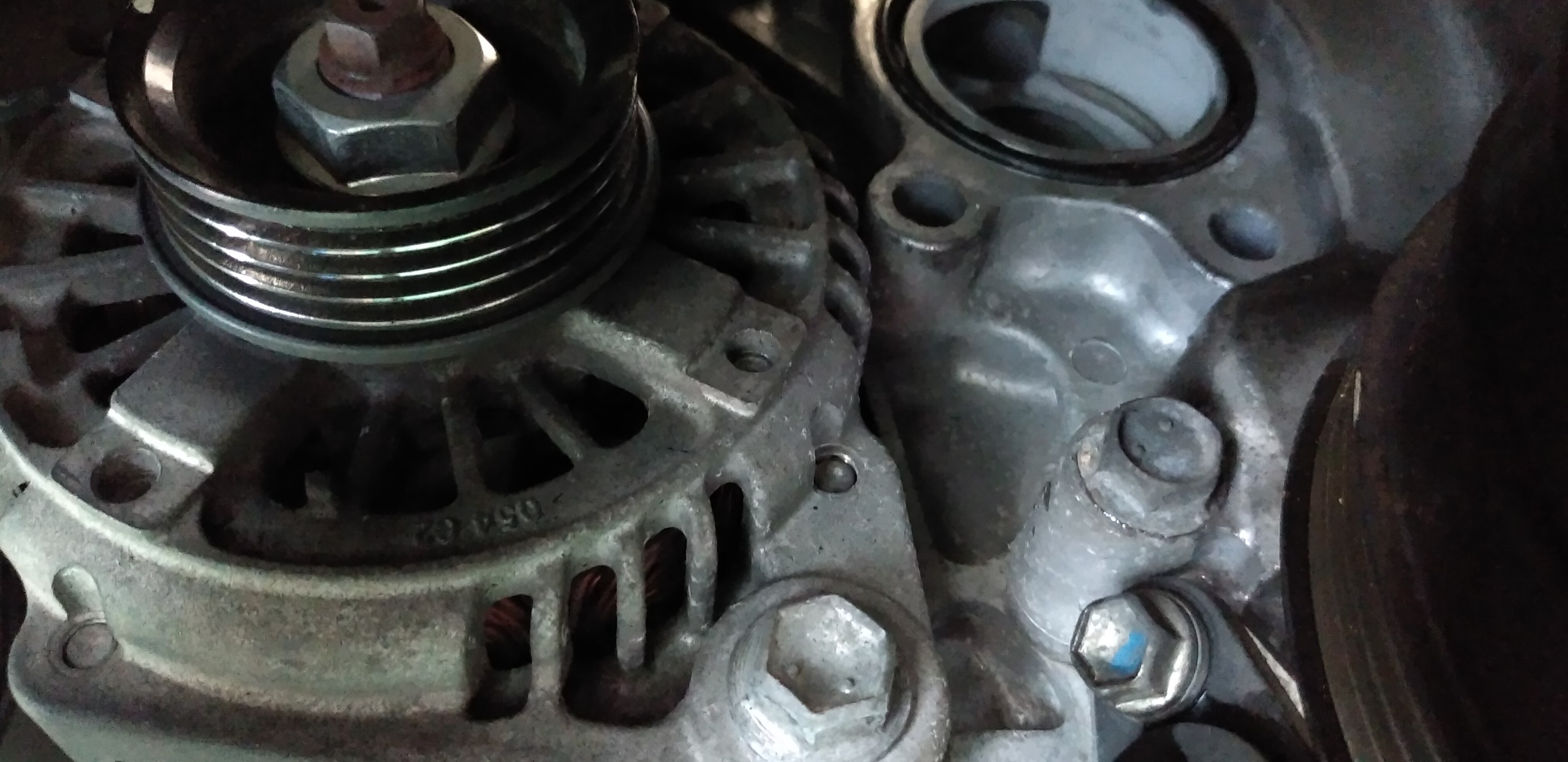 ウオーターポンプを交換するときは通常ベルト交換も一緒にします、が今回はベルトが新しかったため交換しませんでした