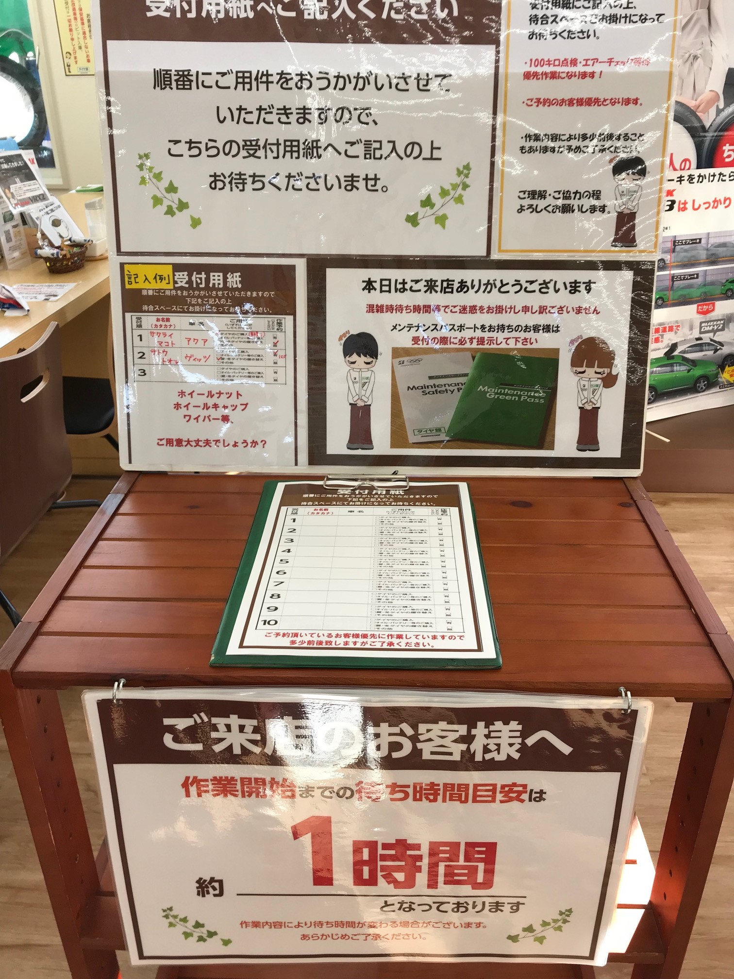 これから繁忙期などの混雑時には受付表を設置する事に致しました。