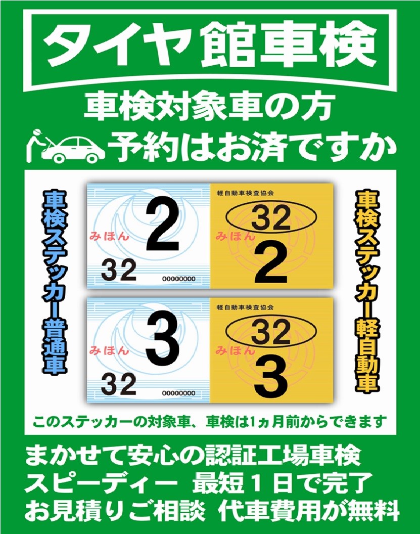 タイヤ館では車検も受付しています!!
