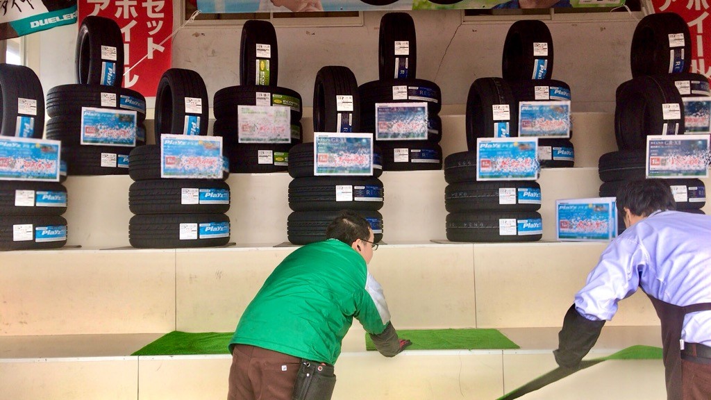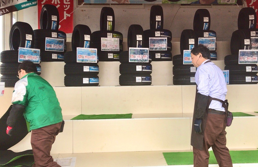 夏タイヤを並べ価格POPも取付ます(*´▽`*)
