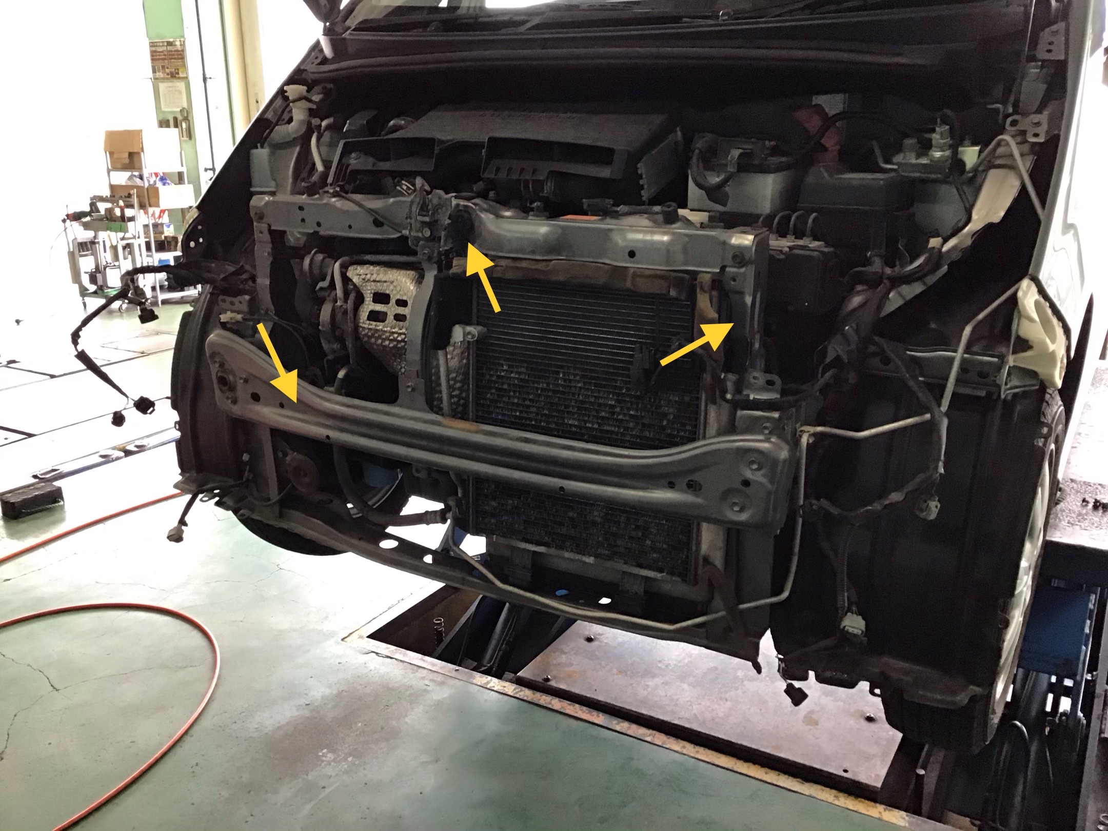 フロントバンパー・ヘッドライトを取り外します。 【下写真】