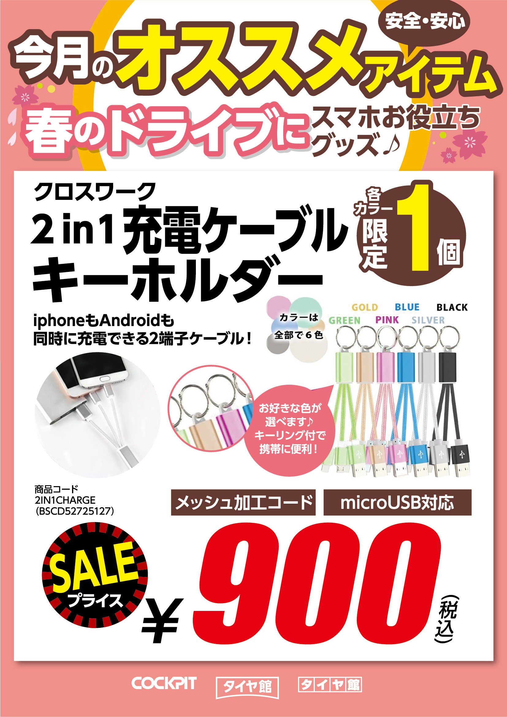 春のドライブにオススメ商品のご案内♪ ポスト 2020年3月8日 今月のオススメ商品 【スマホホルダー】 スマホでナビをご利用する方にめちゃくちゃオススメです!! エアコンの吹き出し口に取り付けるだけ!! 簡単・便利一押し商品です(*´▽`*) 2つ目は【充電ケーブルキーホルダー】 キーホルダーなのでどこにでも付けられ紛失の心配もありませんね(*´▽`*) コードも切れにくいメッシュ加工になってます! 数量限定ですのでお早めに~(*´▽`*) 担当:スガワラ