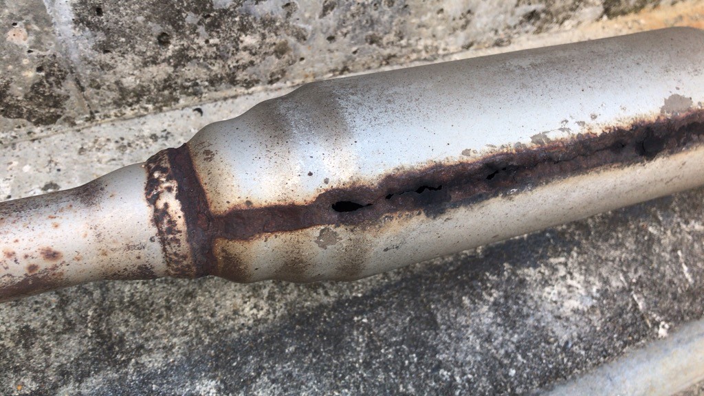 先日オイル交換でご来店いただき、その際にマフラーに穴があいているのを発見しました。