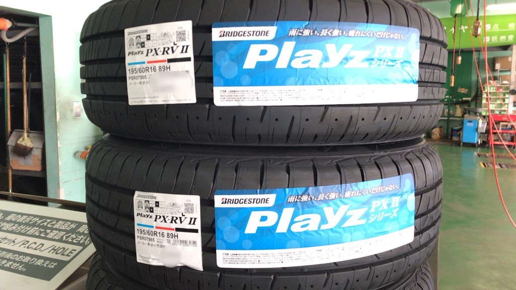 部活動の送り迎えや試合など、子供達を乗せて距離もかなり走るみたいで、直進安定性や雨の日も安心して走れるしっかりしたタイヤがイイという事で『プレイズPXーRVⅡ』へ交換する事になりました。
