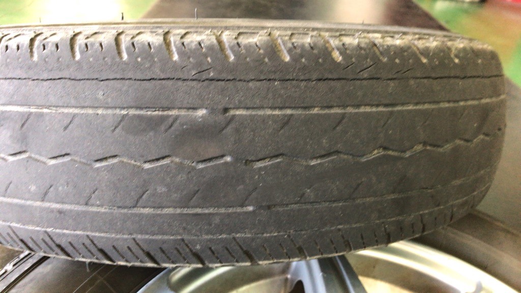 タイヤを点検させてもらった所、スリップサインも出ていてかなりツルツルの状態でした。