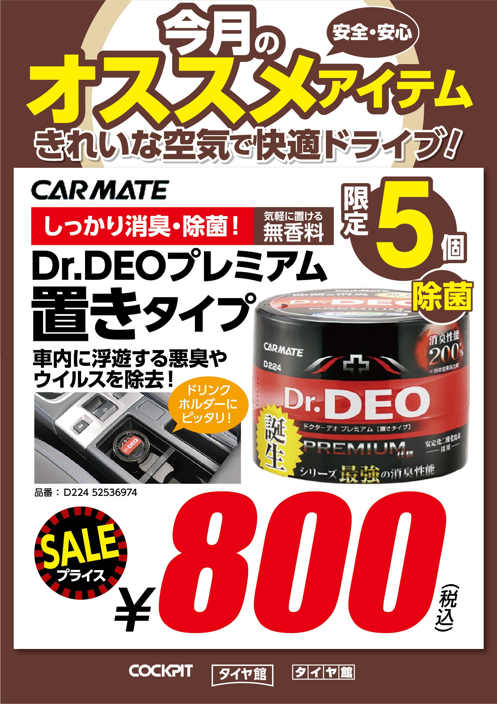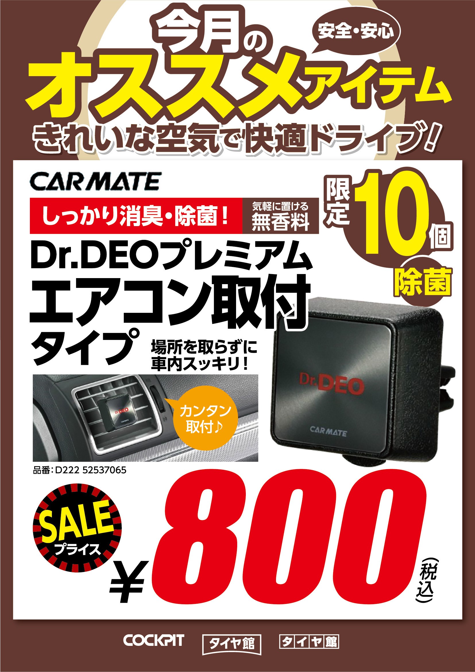 今月のオススメ 除菌・消臭剤♪ ポスト 2020年6月1日 今月のオススメ商品のご案内です♪ Dr.DEO 除菌消臭剤プレミアムエアコン取付型 無香タイプ 圧倒的な消臭パワー!! 菌・悪臭・ウイルスを除去!! 60日持続可能です(*´▽`*) Dr.DEO除菌消臭剤プレミアム置き型 無香タイプ 空間に浮遊する菌・悪臭成分・ウイルスを除去! 効果は夏場約1か月間 ぜひぜひお試しくださいね(*´▽`*) 担当:スガワラ