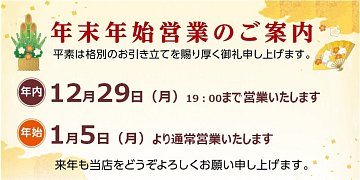 いつもタイヤ館鶴岡をご利用いただきありがとうございます。 年内最終営業日となります。 最終作業受付は18:00までとなっております。 お急ぎのお客様はお早めにご来店お願いします。 年末年始は多くの車屋さんや部品屋さんなど連休に入ると思います。 その際お車のトラブルなどないように事前に点...