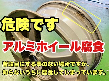 おはようございます。 ご自宅でタイヤ交換されて、当店でエアーチェックを行いました。 【エアーが漏れている…】と言う事で確認してみると、 【ホイールの腐食】が原因でした。 バラさないと見えない所ですので怖いですね。 ホイールが腐食していると見た目が良くないだけではなく、 新しいタイヤを...
