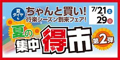 こんにちは~(*^_^*) いよいよ明日21(土)~29(日)まで、集中得市を開催いたします(#^.^#) 夏タイヤはもちろん、スタッドレスもお買い得です! トラブルが多いお盆休みの前に、タイヤ・バッテリーオイル交換など、しっかりメンテナンスしておきましょう(#^.^#) 皆様のご来店お待ちしております...