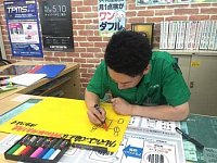 売り出し3日目の月曜日!! タイヤ交換の合間に店づくりをしてました〜(^з^)-☆ 手書きのポップってなかなか難しんですよね〜♪ 店内の至る所にスタッフが書いたPOPが貼ってありますので、ご来店の際はぜひ注目して下さいね☆ 今回写真は石川くんが頑張ってPOP作成している所です! 武田さんは来月お誕...
