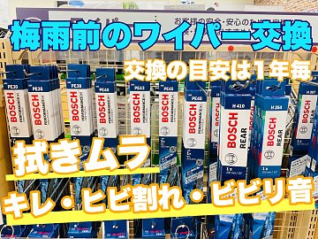 記事一覧 雨の日の視界は大丈夫ですか? いつもタイヤ館鶴岡のホームページをご覧いただきありがとうございます。 春から初夏にかけて(梅雨時期前に)ワイパー交換のおすすめをしています。 ワイパーのゴムにひび割れがあったりゴムが切れていますと水が掻き分けれず スジになって水が残ってしまいます! 視界がスッキリしていないと運転... 2026年4月24日 ポスト