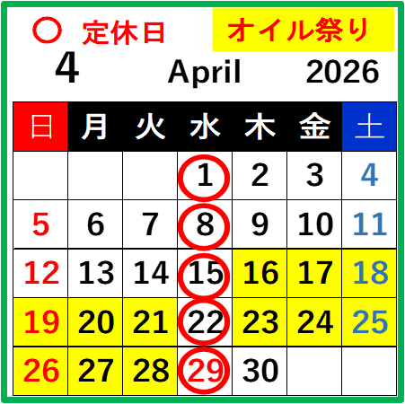 2026年4月営業カレンダー