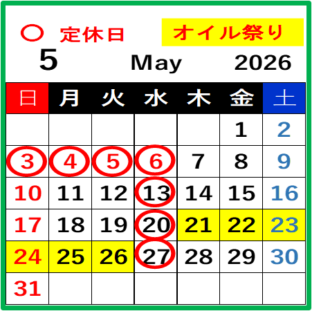 平日9:00~18:30(作業受付は18:00まで) 日・祝日9:00~17:00(作業受付は16:30まで)