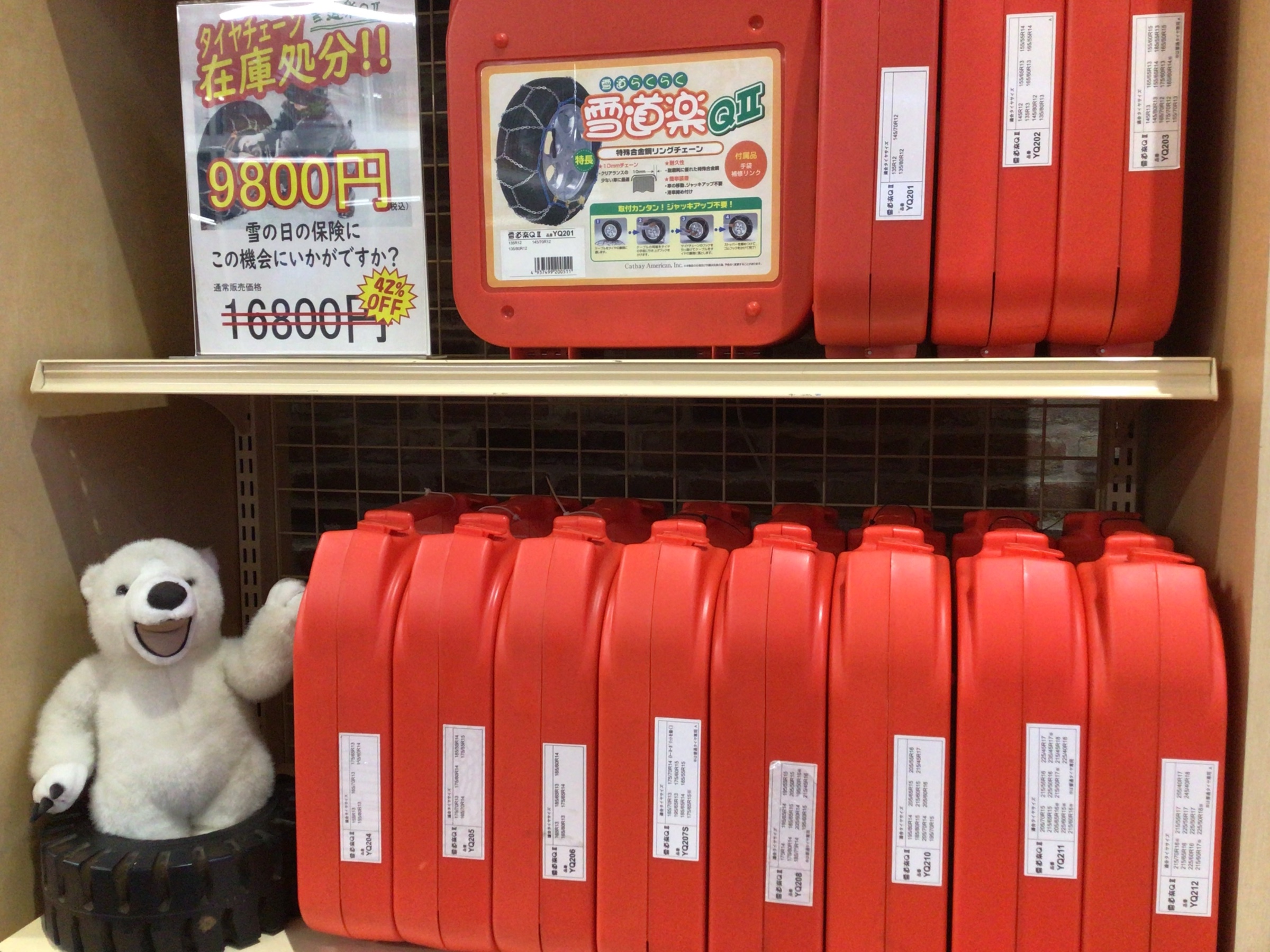 まだまだタイヤチェーン販売中 ポスト 2026年1月9日 新年明けてすぐにまとまった雪で困りませんでしたか? 天気予報で雪マークが出ています。 チェーンの在庫は有りますので、 ご相談お待ちしています。 担当:田村