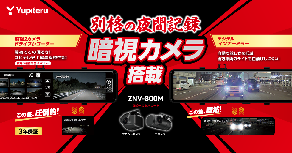 闇夜でこの明るさ。ユピテル史上最高の暗視性能。
