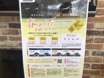 記事一覧 レグノチャンスがキターーーーーー アレンザもレグノも大チャンス 連休前にタイヤ購入したい みなさま千載一遇のチャンスあります レグノかアレンザ4本購入で 抽選でPayが最大で10万円分 プレゼントされます どうせ買うなら今がチャンス 応募期間は5月31日までです 是非この機会に交換を タイヤ館津山公式LINE タイヤ館津山公式Ins... 2026年4月24日 ポスト