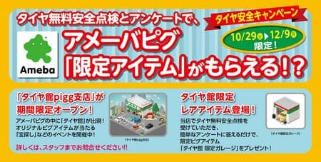 アメーバピグでタイヤ館限定アイテムがもらえる!?