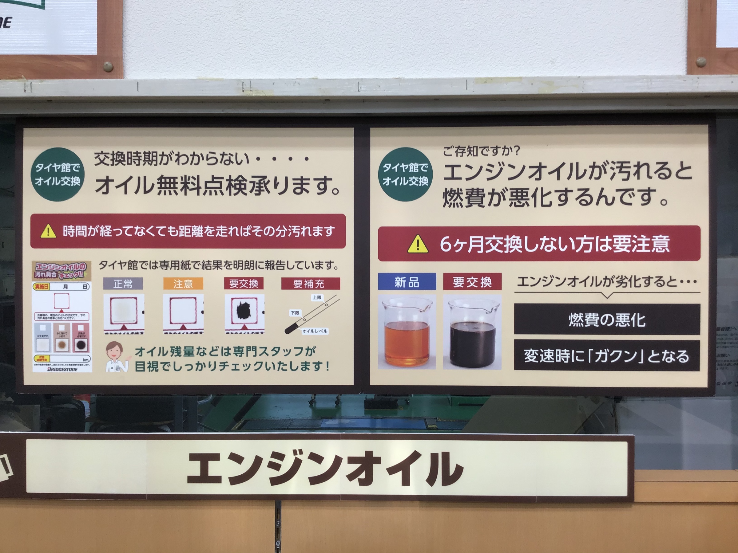 タイヤ館ではオイルの点検を無料で行っていますよ!