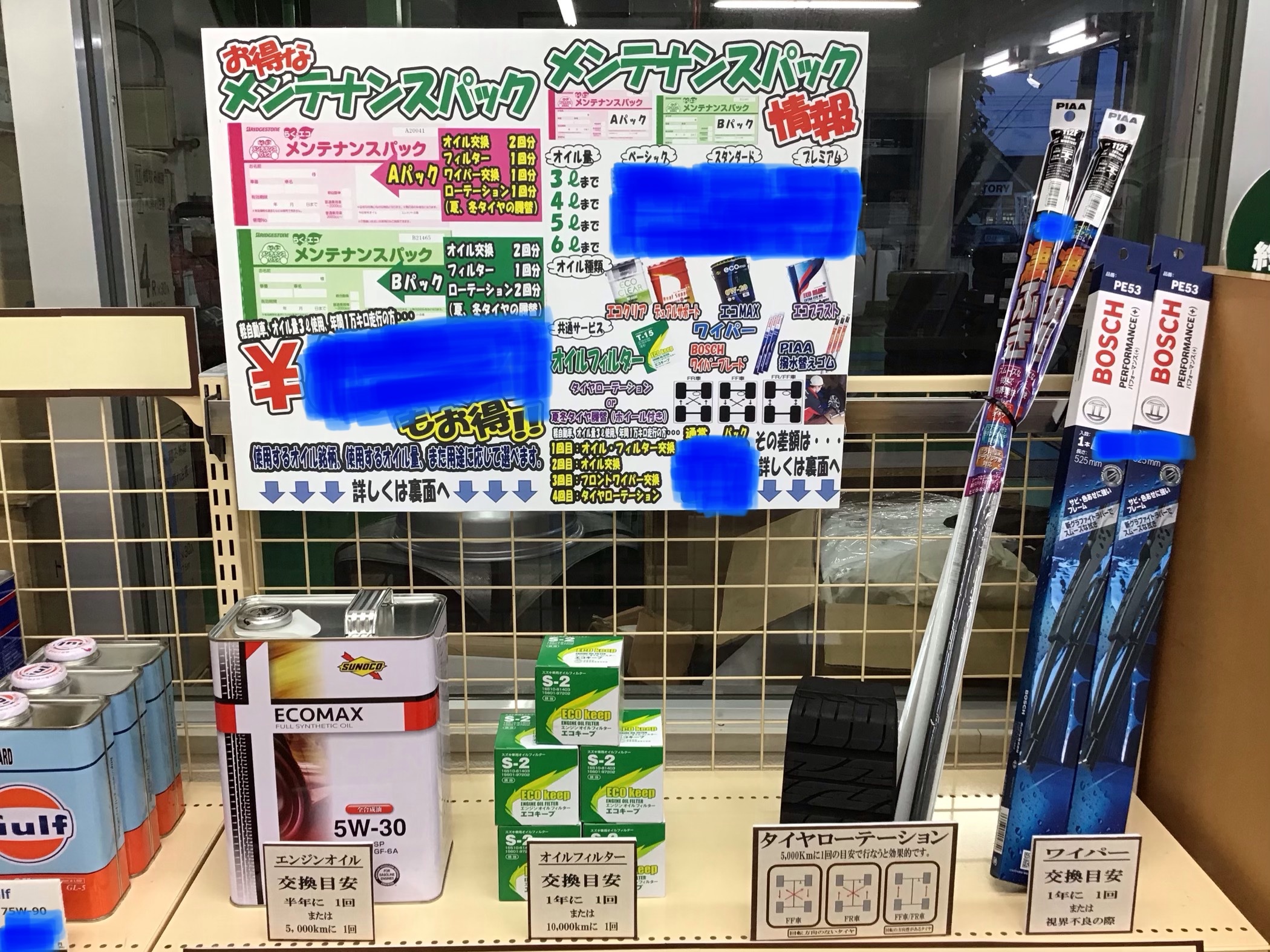 一定の金額をはじめに押し払うことでオイル交換やワイパー交換、ローテーションなど決められた回数分無料で行えます( ´ ▽ ` )