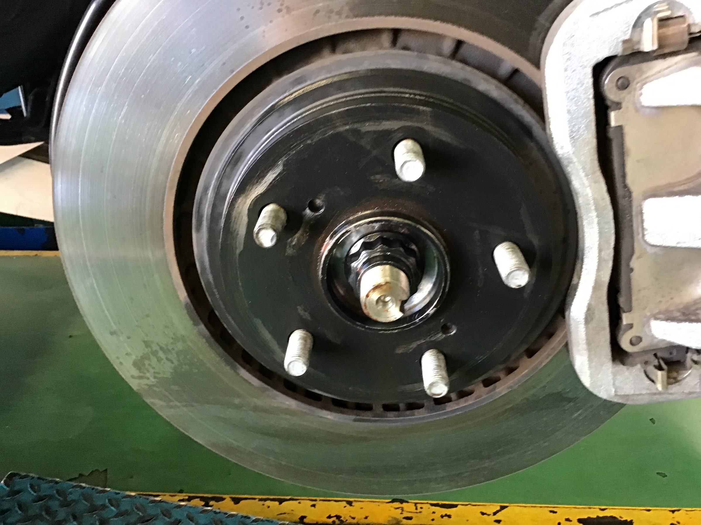 タイヤ交換でご来店されたお客様のお車のハブの防錆コートを行いました。