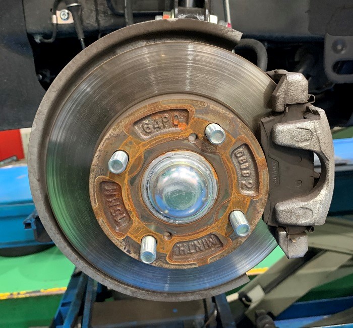 タイヤを外したハブ廻りの錆止めのコーティングがあるのは