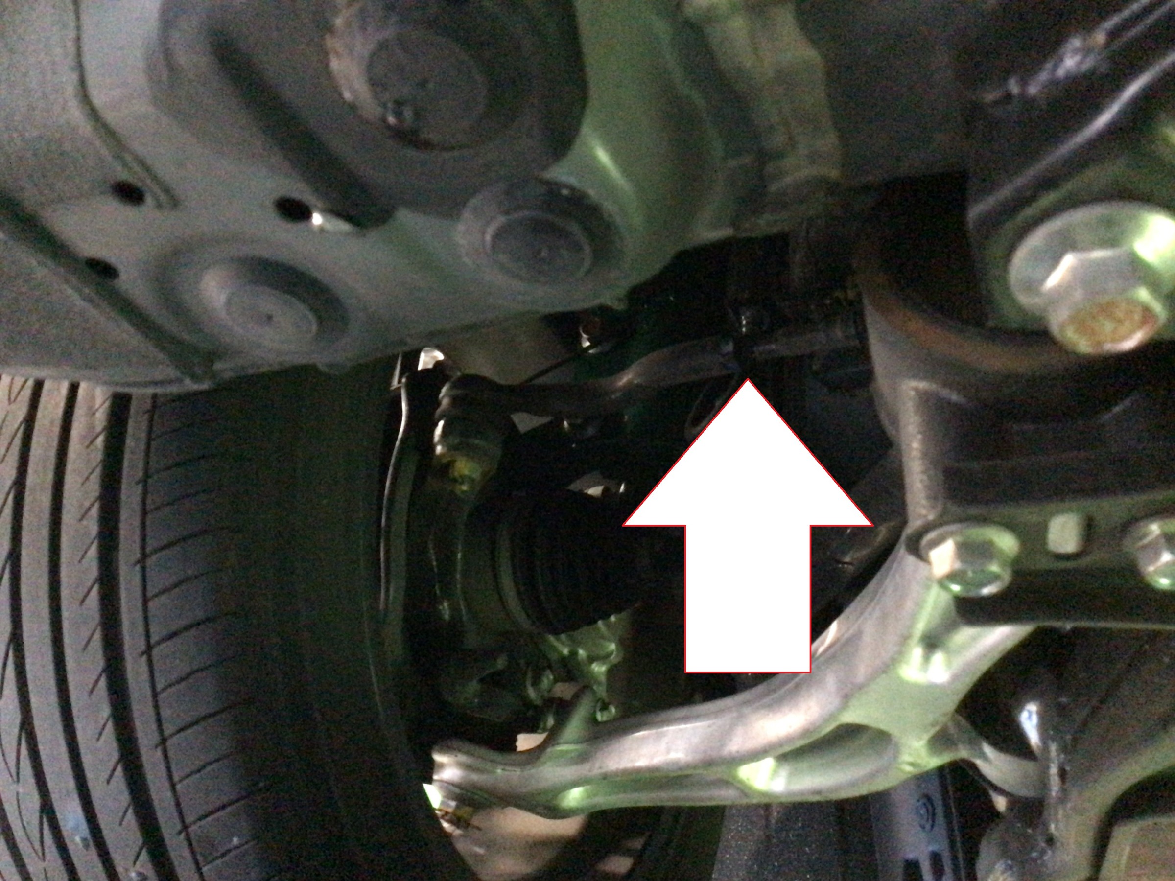 車両の調整個所は Frトー角 のみ。タイロッドを回して長さを調整します!