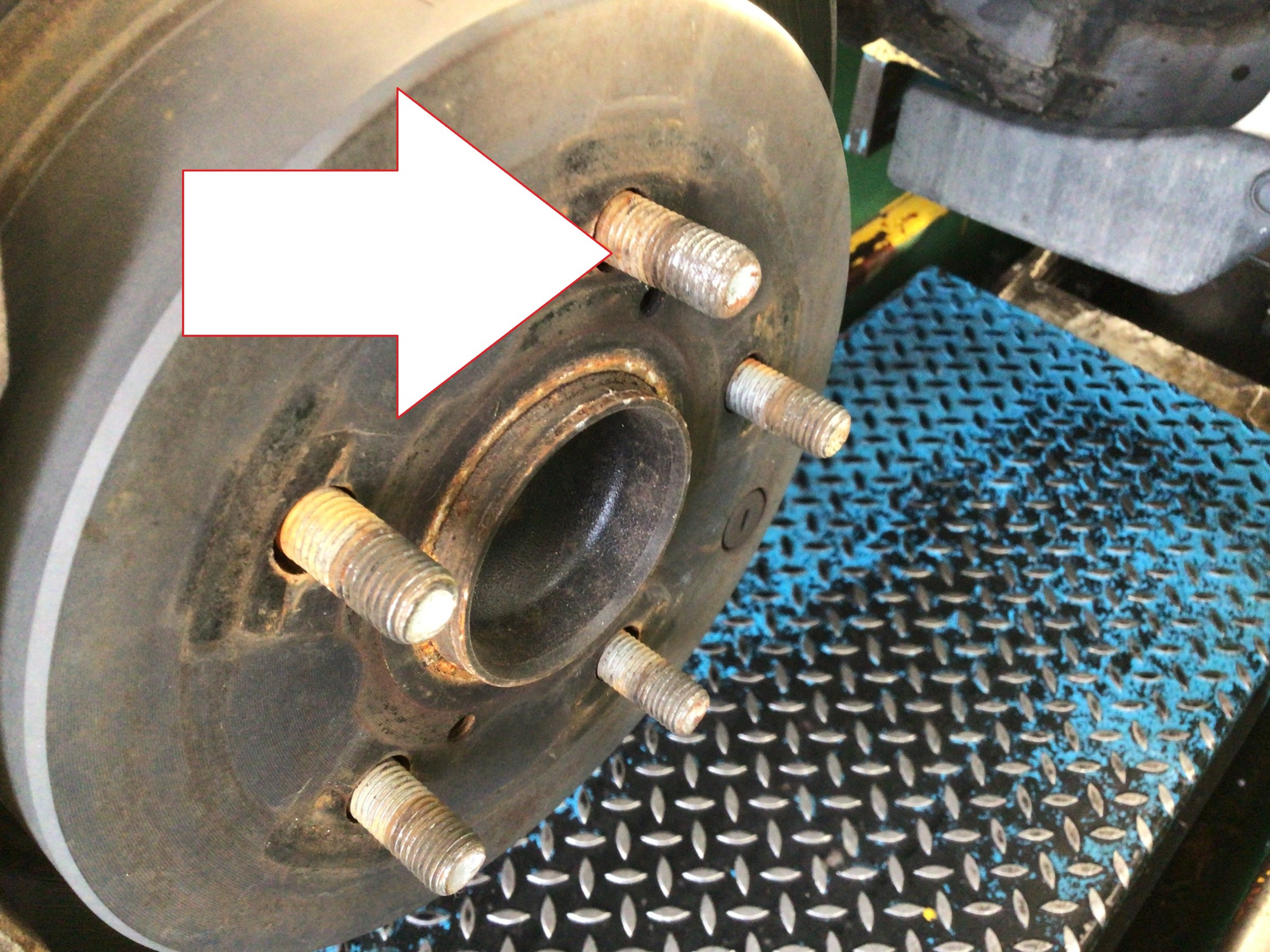 内矢印で記した 1本=ハブボルト の頭が他に比べて白?銀色?