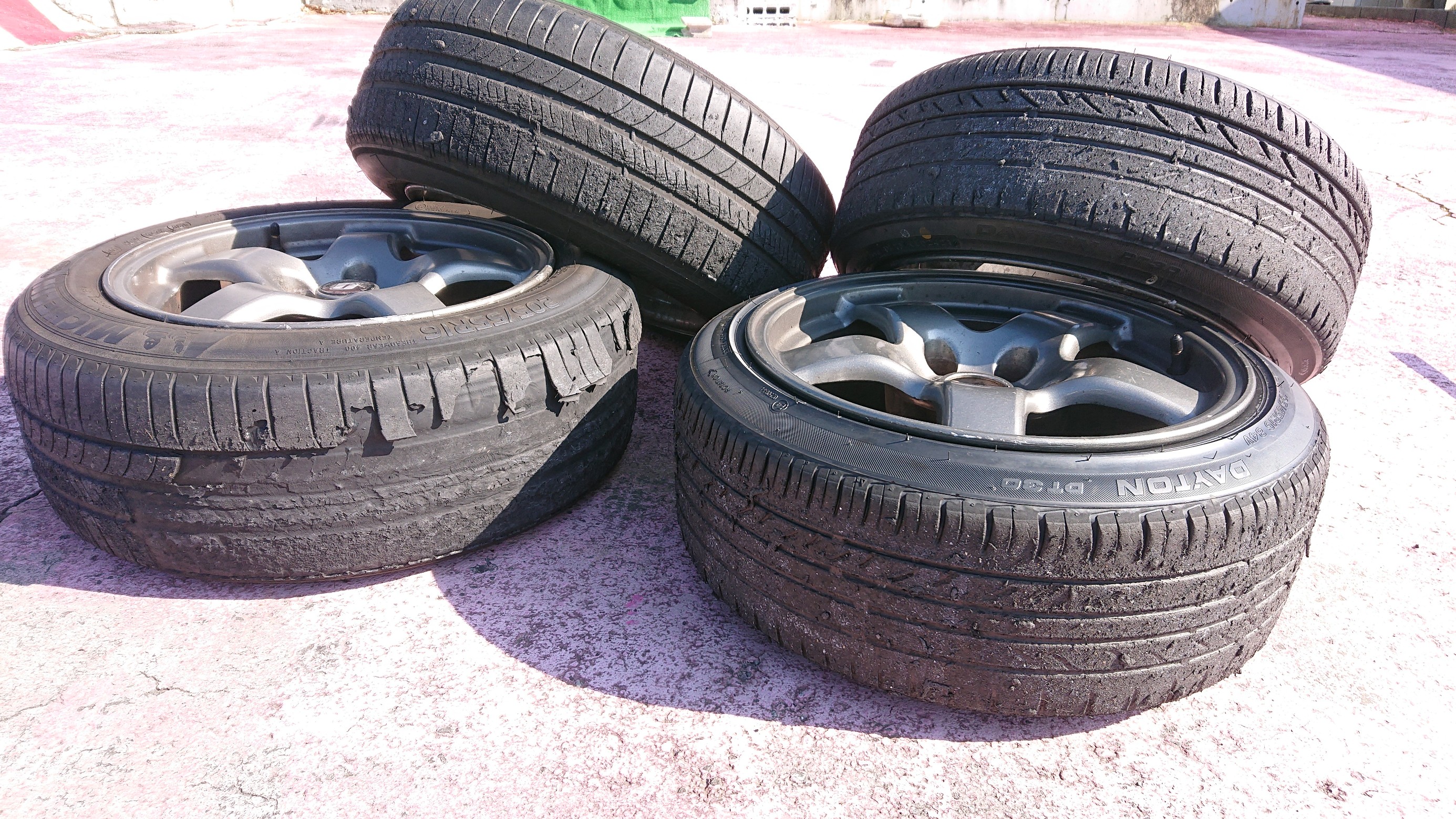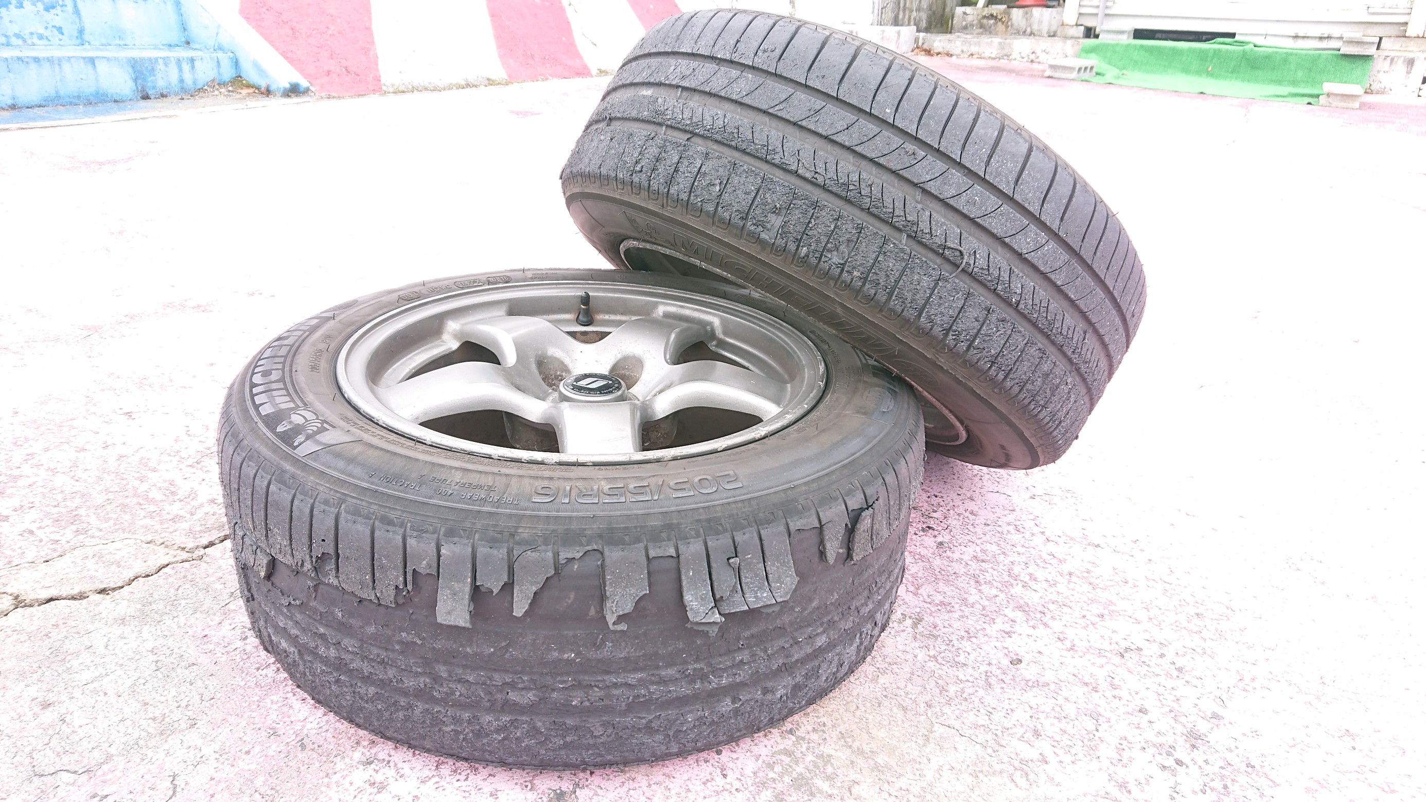 と言えど、先ほどのタイヤは使い物になりませんので持ち込んだ最後の1セットへ交換。