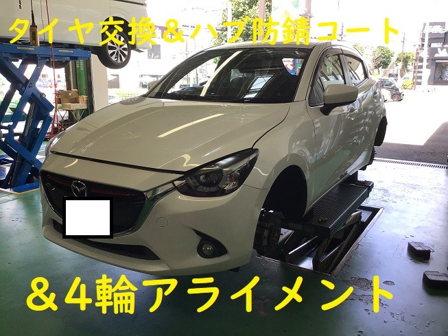 MAZDA デミオ DJ5AS タイヤ交換&ハブ防錆コート&4輪アライメント☆