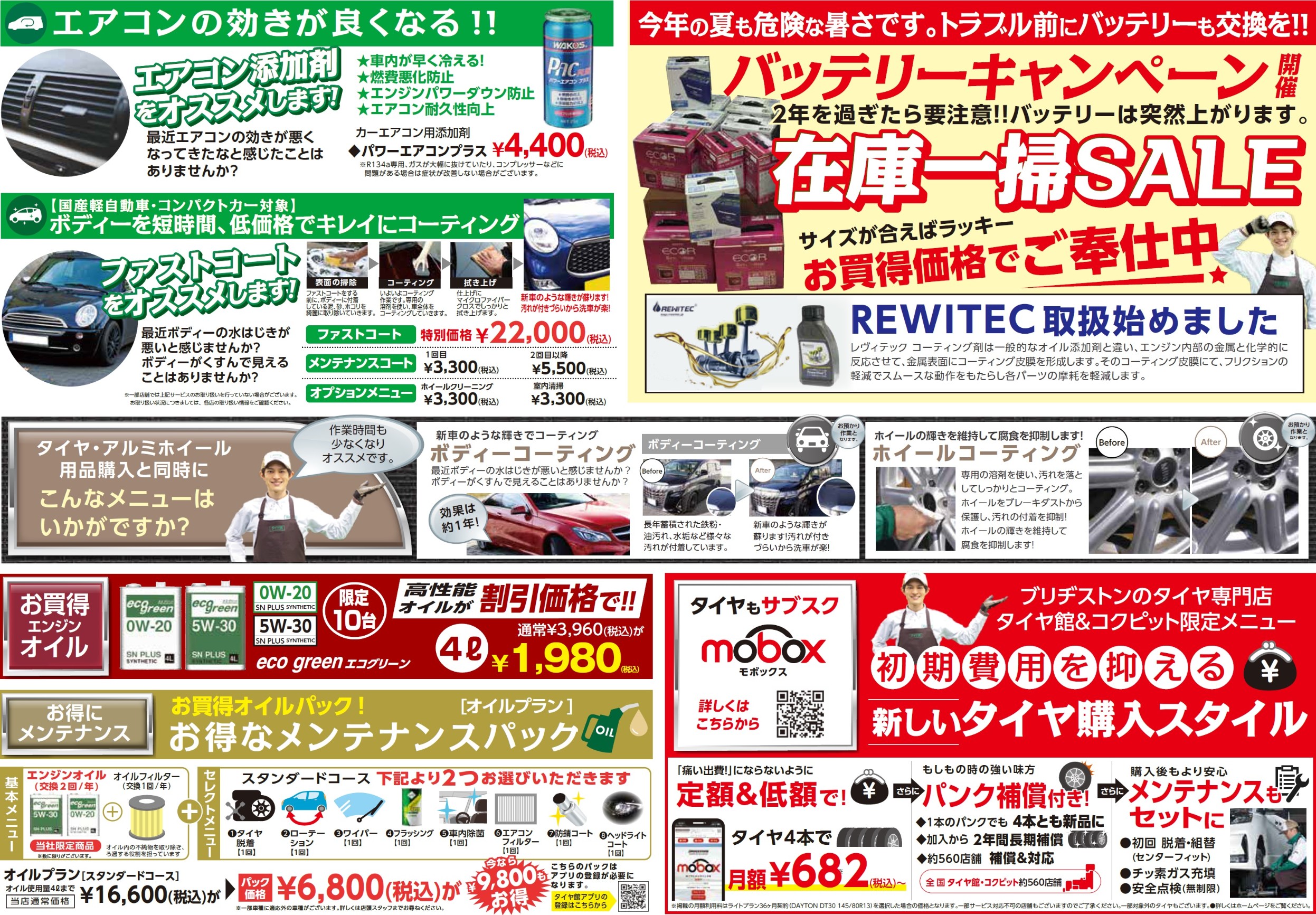 オイルのメンテナンスパックや夏本番にほしい、エアコン添加剤もあります。