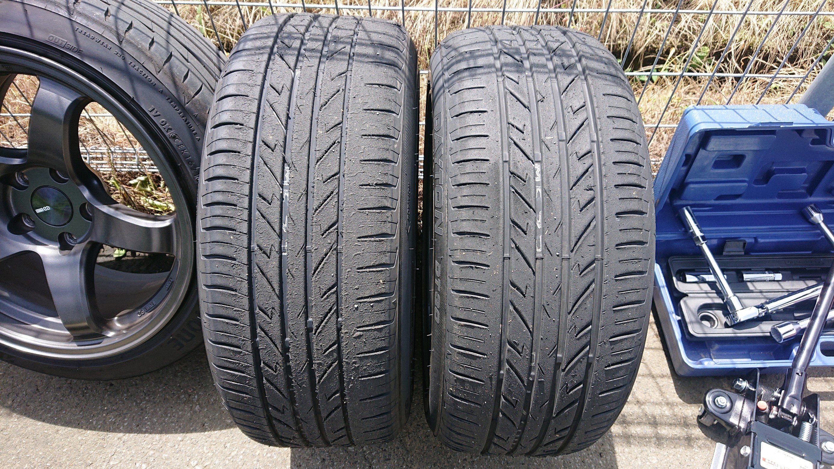 つい先日組付けたばかりの 新品タイヤ ですけど⁉汗 今日初めて装着しましたけれど⁉汗