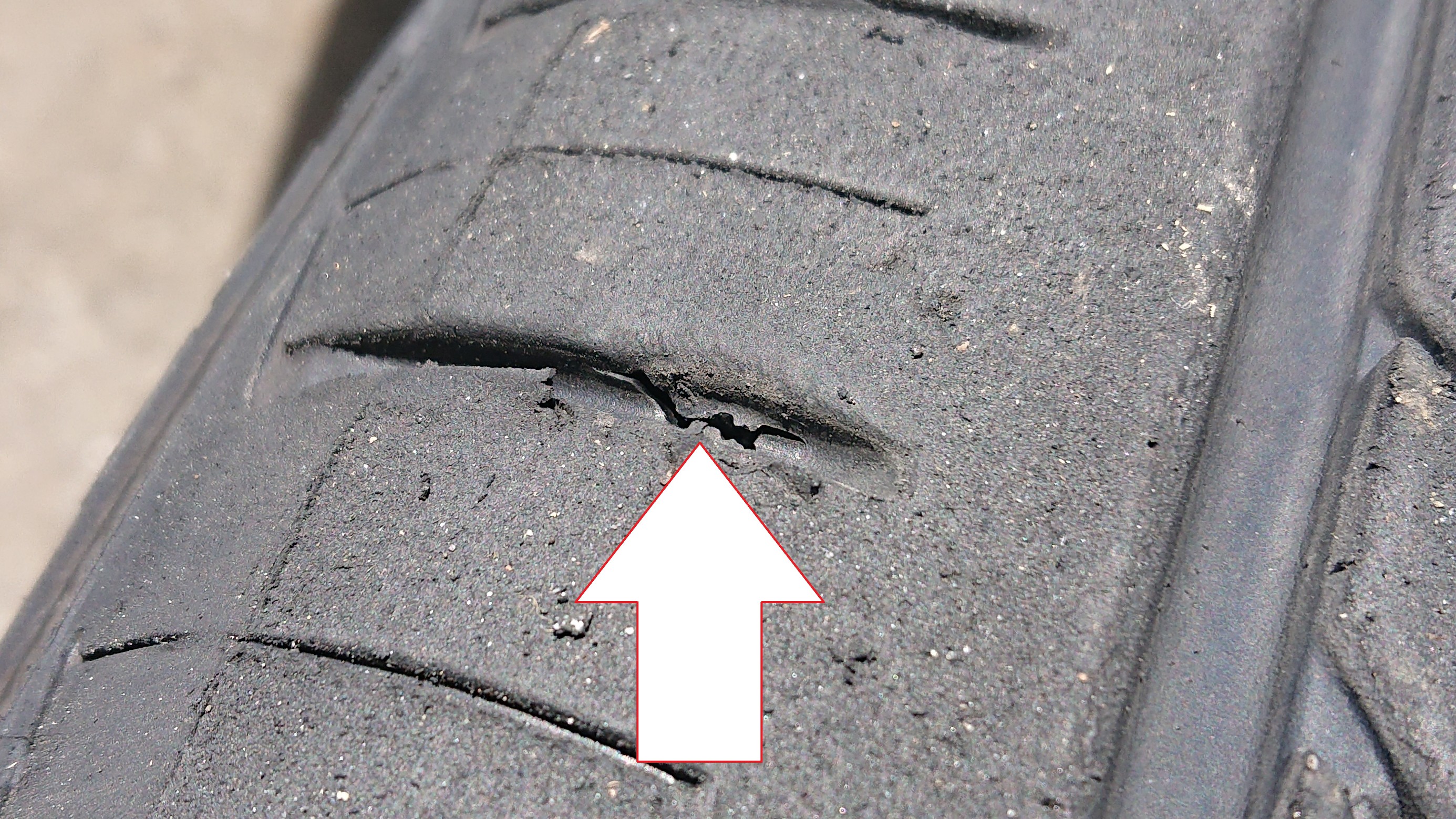 トレッド?が裂けております。。。ここからエアーが漏れ出しておりパンク。。。