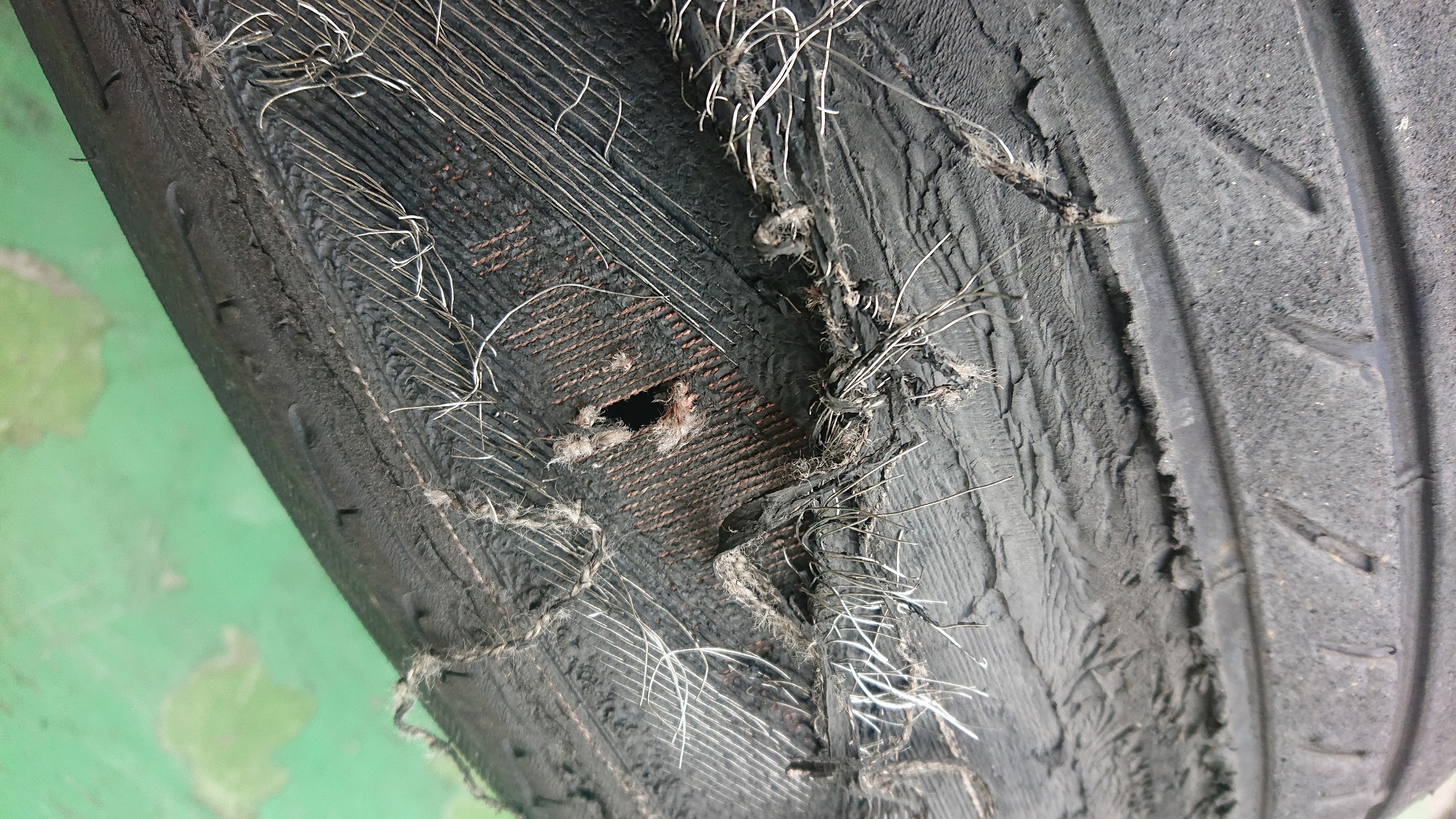前回の教訓を完全に無視して走行を続けた結果…今回は上記画像の通り、穴が開き再度パンク状態。。。
