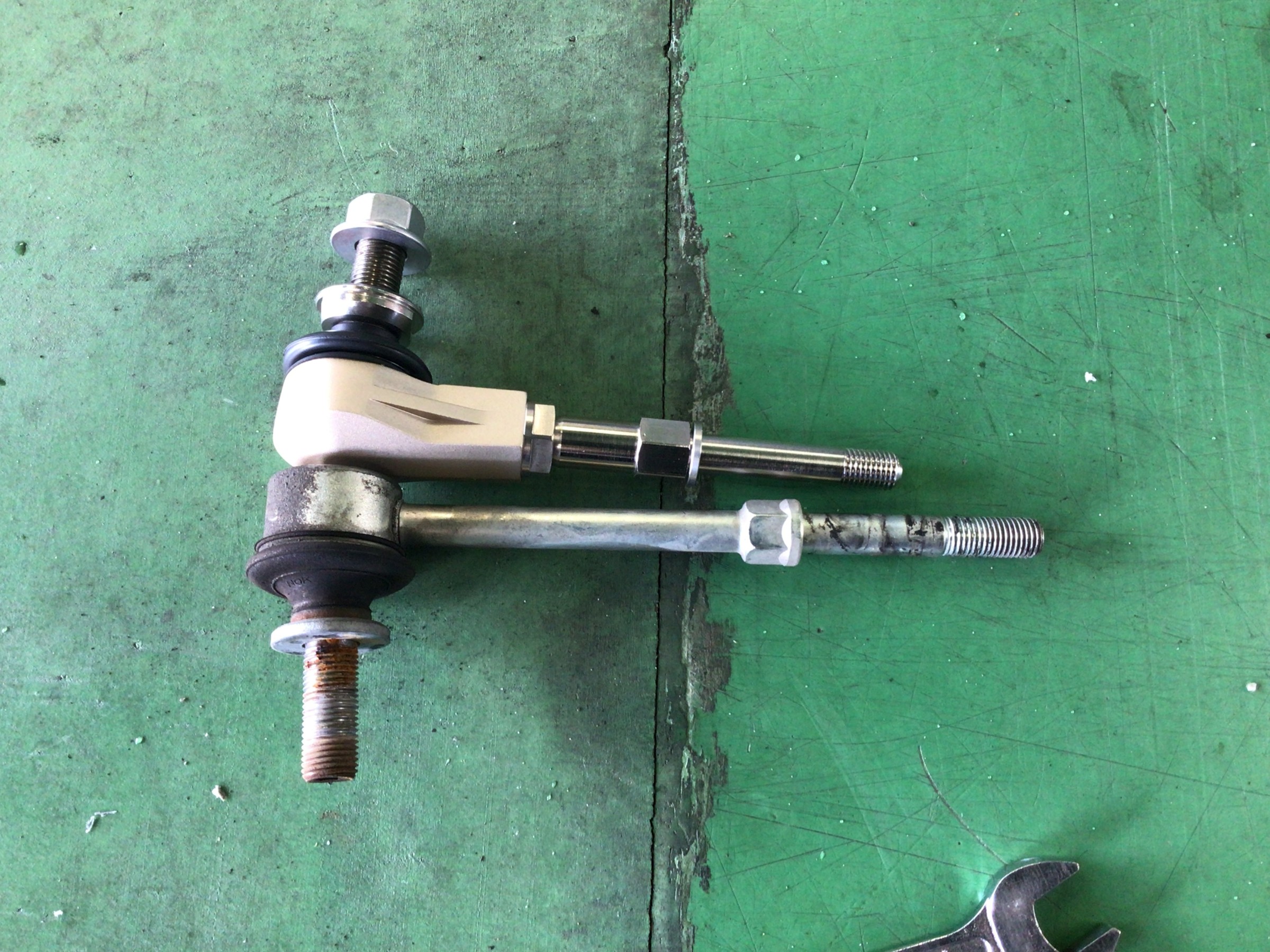 リンクの長さを調整する事で、スタビの初動位置を純正値に戻す役割を担います。