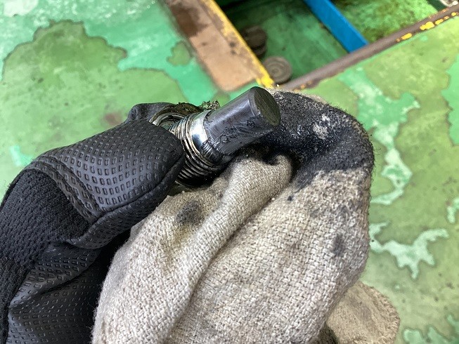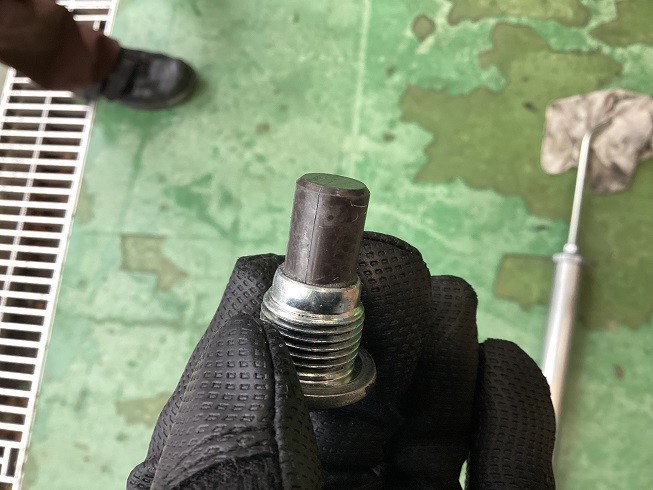 外したドレンボルト・・・先端のマグネット