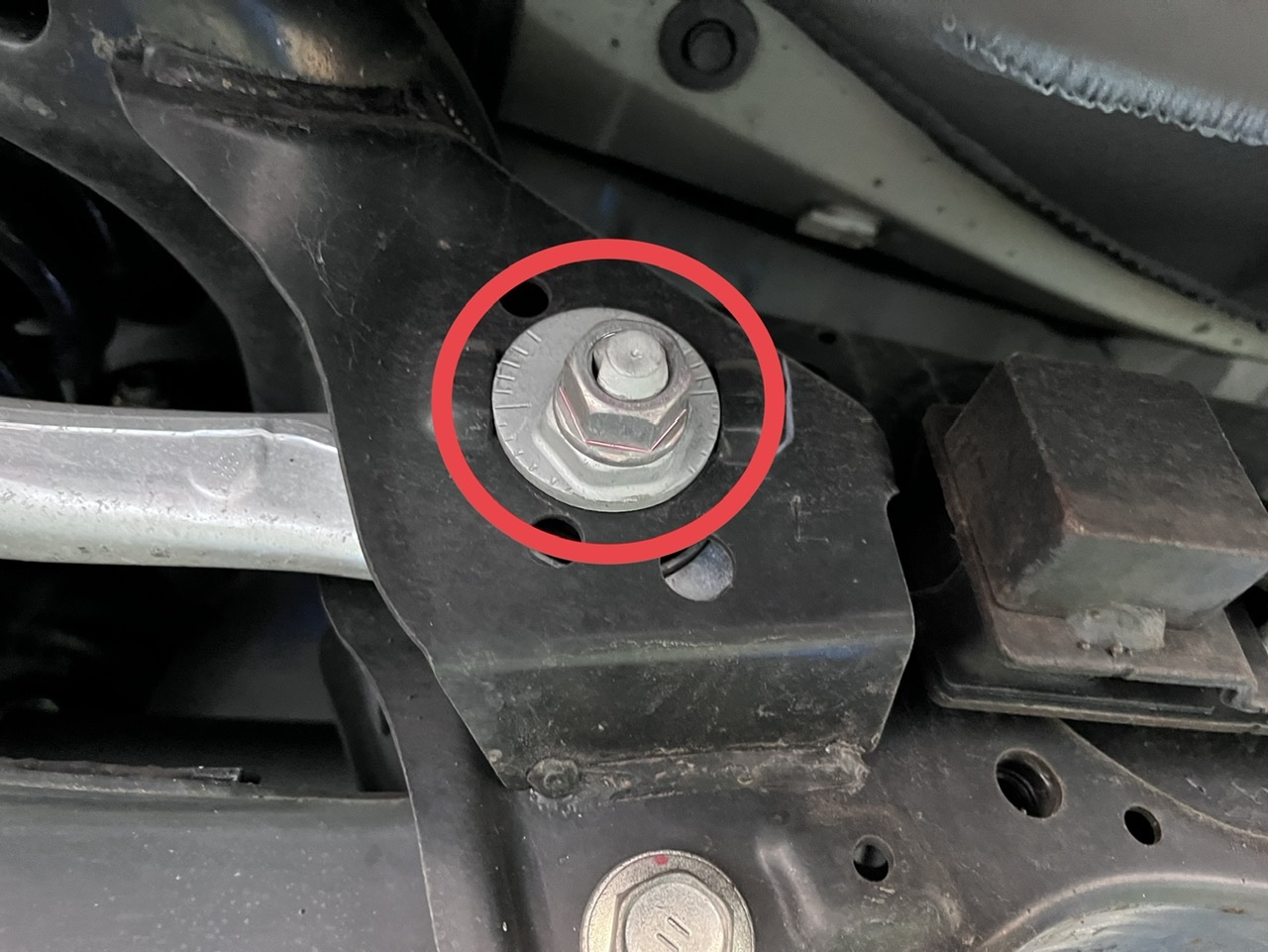 偏芯カムによるトゥ調整です。