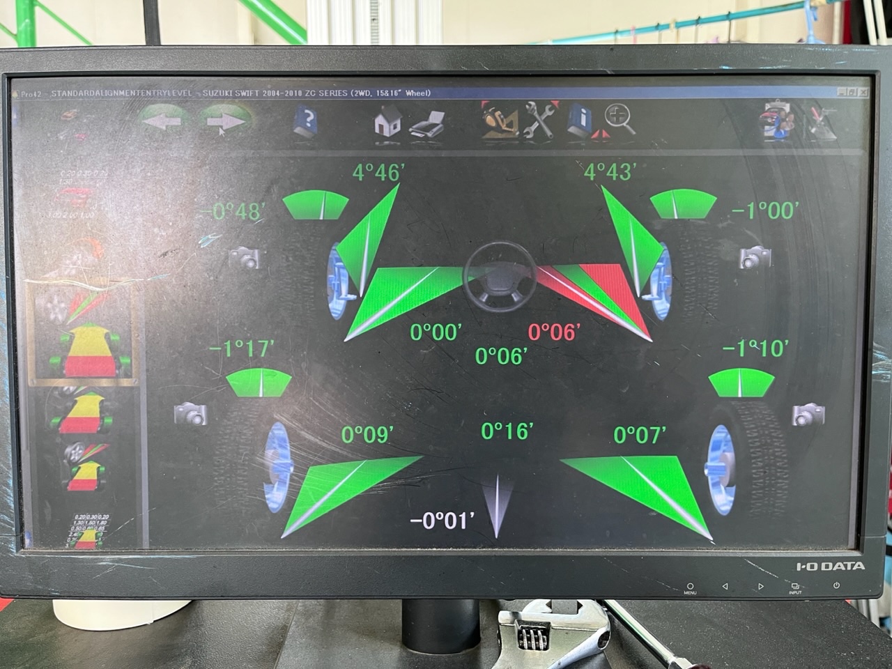 右フロントのトゥインが基準値から外れてます