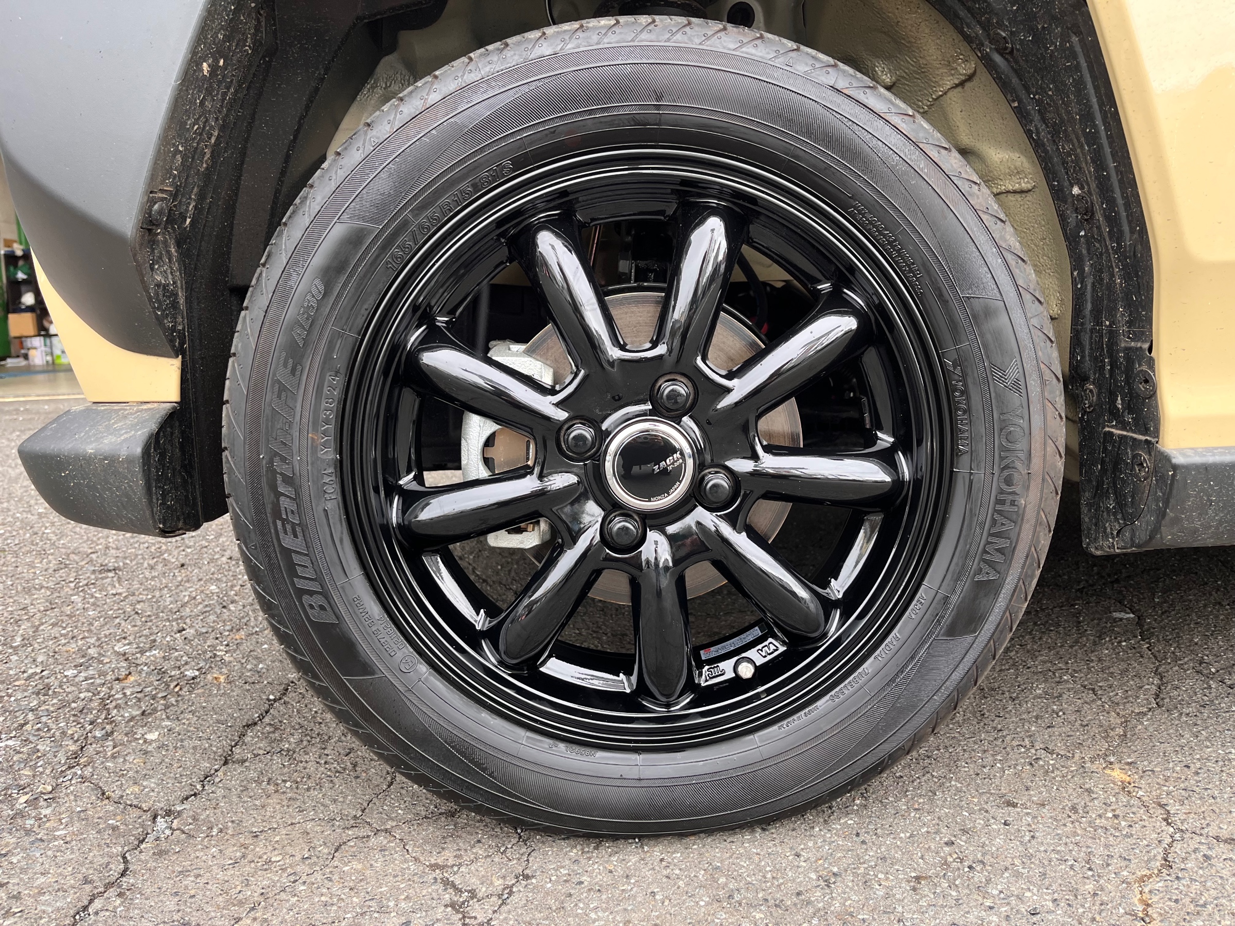 純正の黒いスチールホイールからの交換です