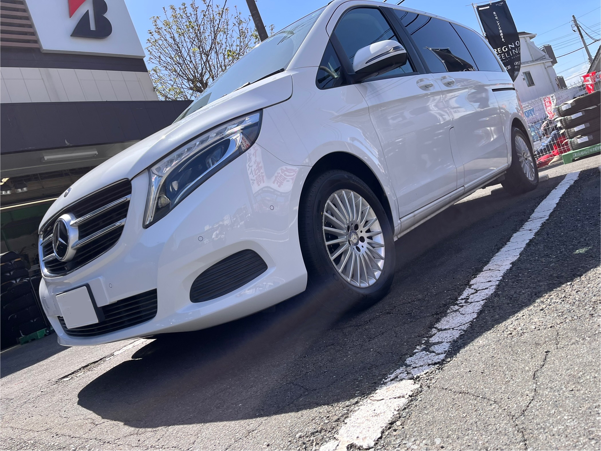 Vクラスがパンクで来店 ポスト 2025年4月19日 メルセデスのミニバン Vクラスがパンクで来店 サイドウォールがカットしており 修理ができないので交換になります Vクラスはとても重量級なので タイヤもサイズだけでなく荷重指数まで 入念にチェックしないといけません 今回装着したタイヤはこちら レグノGR-XIII TYPE RV 225/55R17 101V 純正サイズと同じサイズ荷重指数のタイヤです 新しいレグノGR-XIII Type RVは 新技術を搭載しておりタイヤそのものが 軽くなりました ミニバン用でありながら 全ての性能をバランス良く高めてある プレミアムミニバン専用タイヤです ご来店ありがとうございました カテゴリ:タイヤ関連