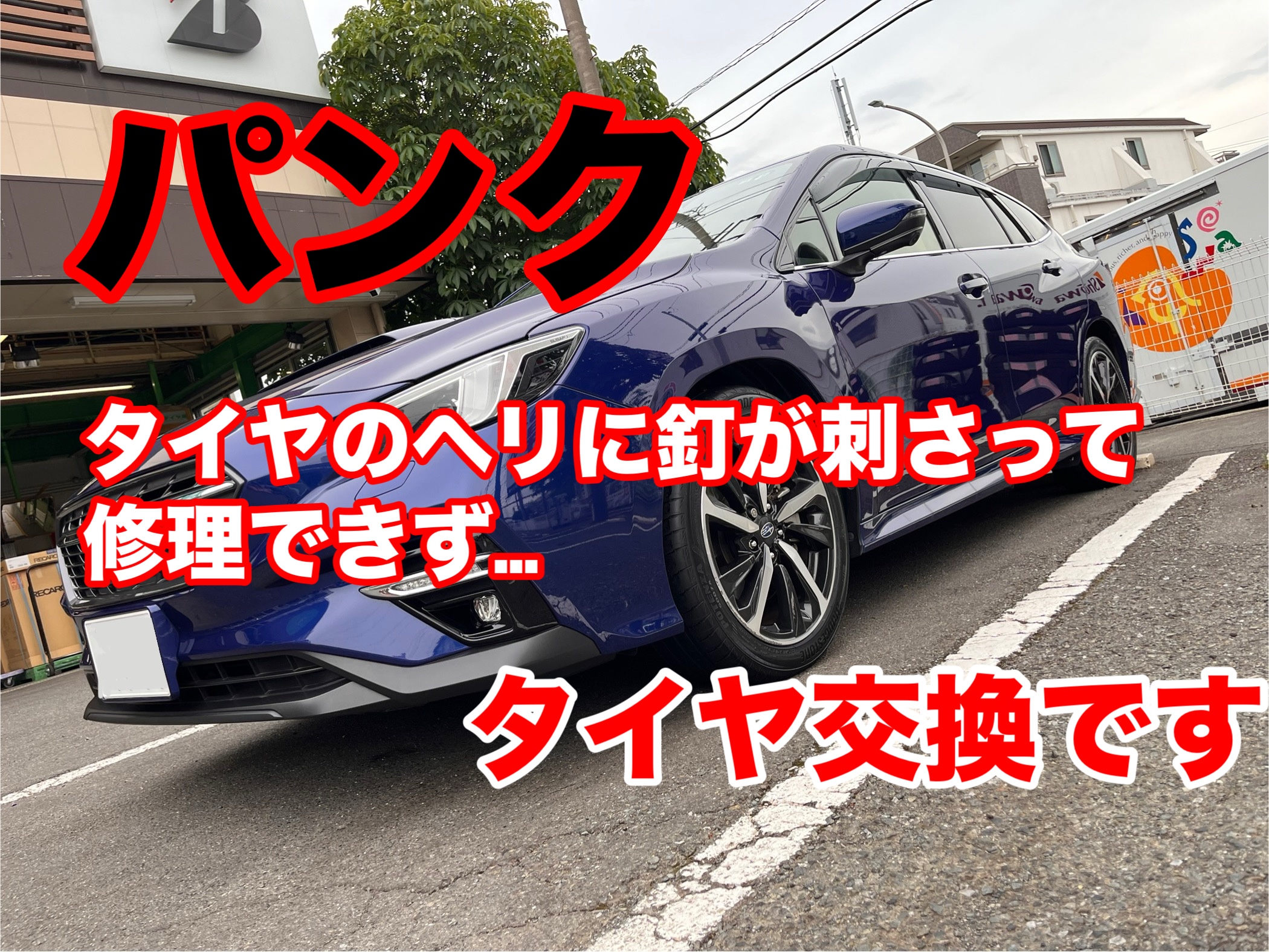 レヴォーグがパンクで来店