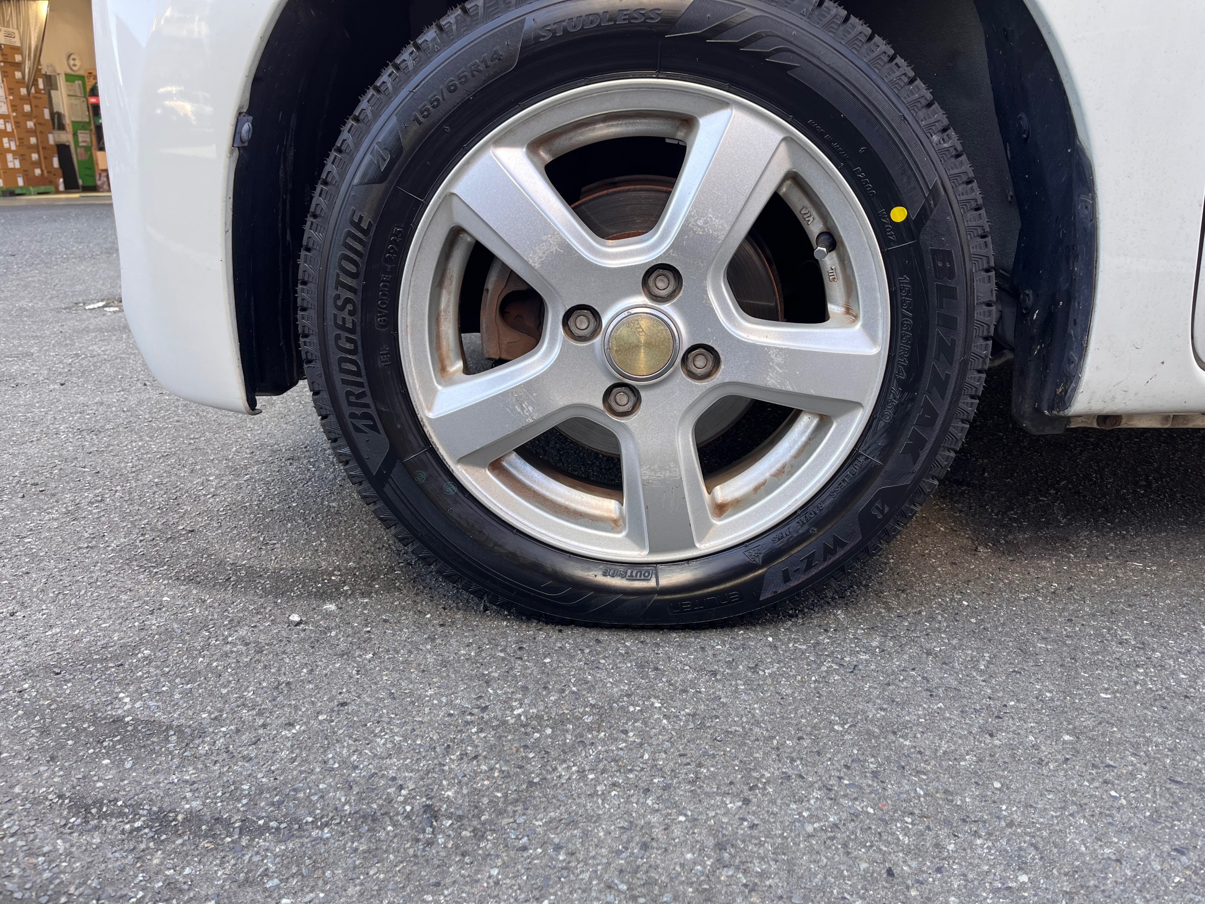 タントに新スタッドレスタイヤを装着です