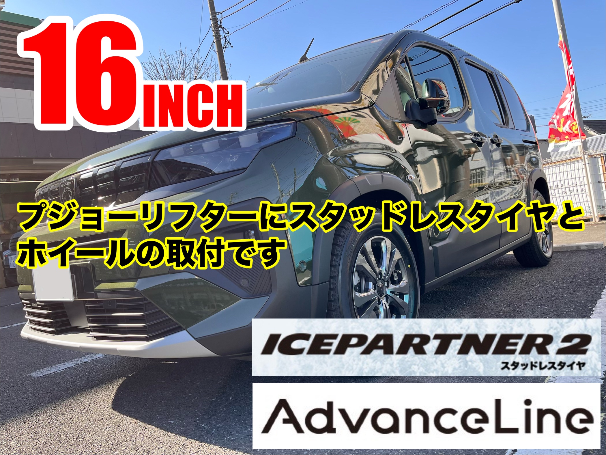 プジョーリフターでスタッドレスセット取付です