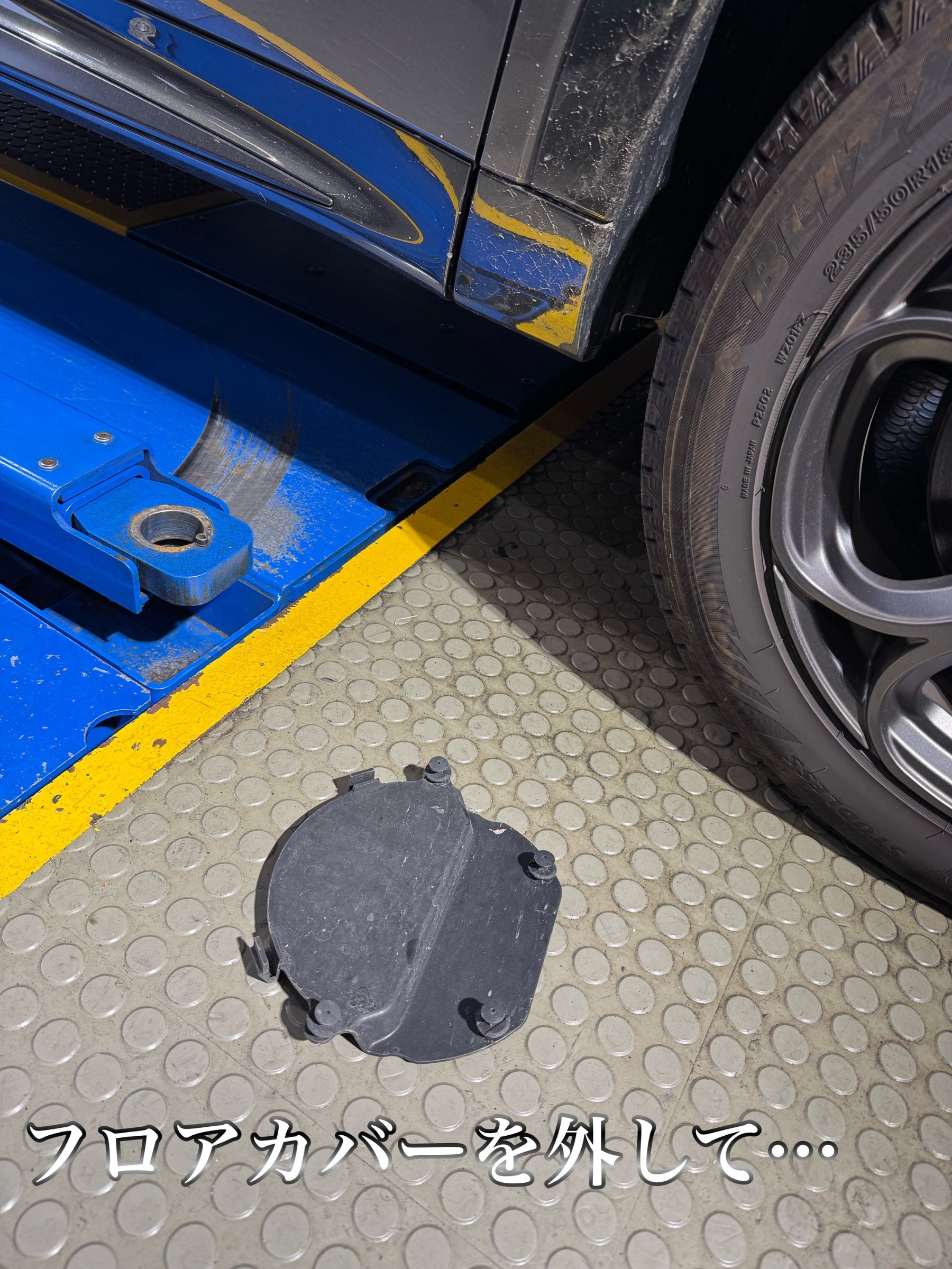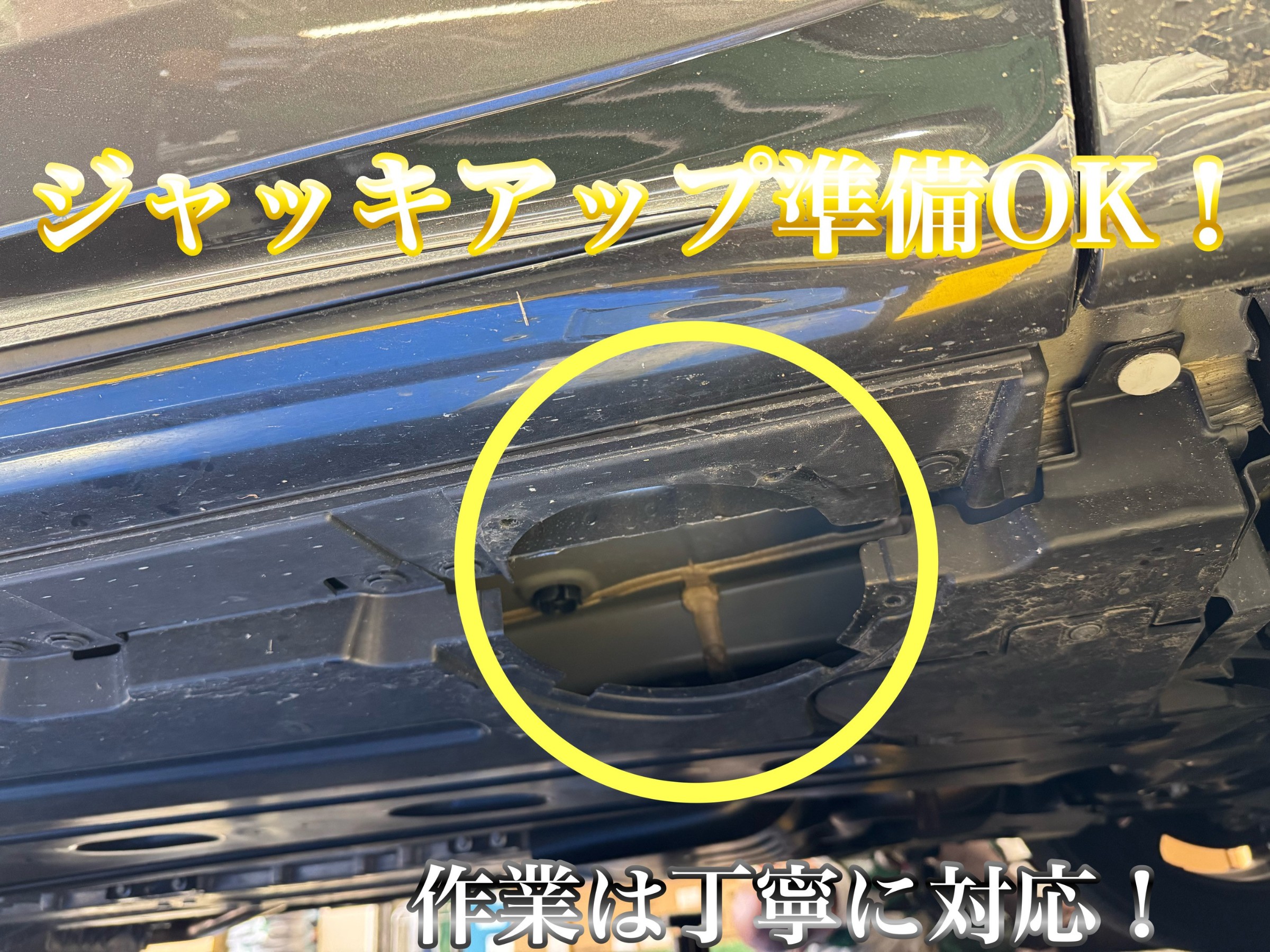 トナーレをジャッキアップする際はジャッキアップポイントがカバーで隠れております。