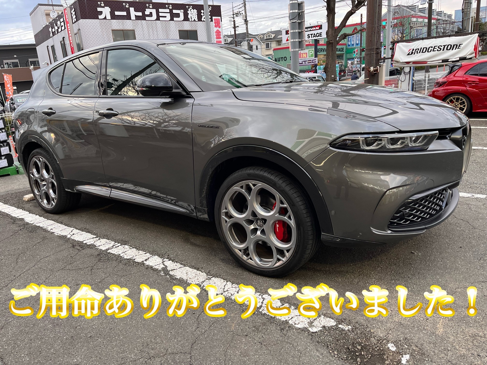 タイヤ交換でいつもご利用いただく〇〇様のアルファロメオ トナーレでございます。