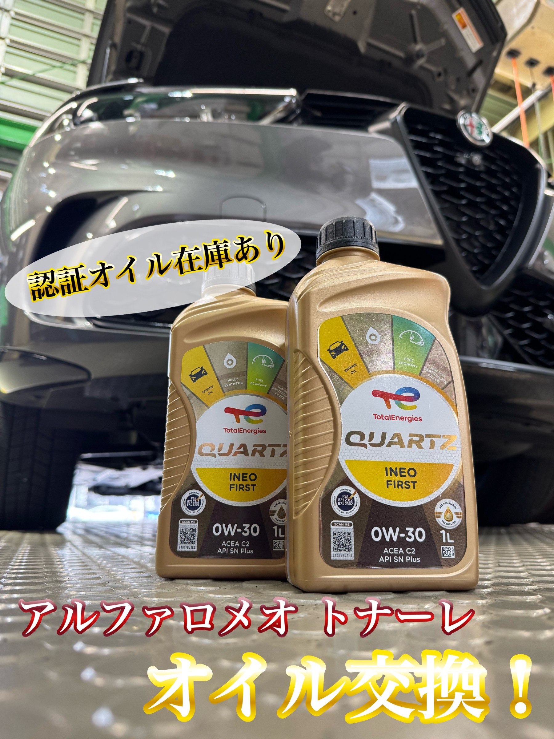 アルファロメオ トナーレは排気量によって使用するオイルの規格が変わります。
