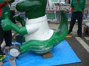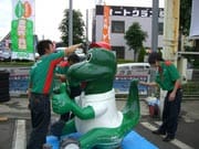 冬タイヤから夏タイヤへの履き替えシーズンもひと段落し、傷だらけで見るに忍びない当店マスコット「カンタくん」の修繕(といってもペンキ塗りですが…)を店長主導のもとに行いました。
